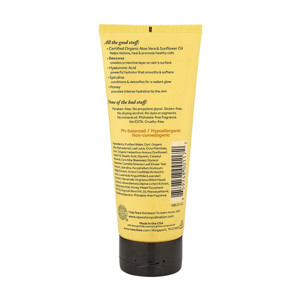 Certified organic aloe vera and sunflower seed oil, rich in anti-oxidents, in the original Orange Blossom Honey scent. Made with honey and hyaluronic acid to soften, heal, and promote healthy skin.