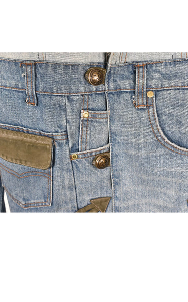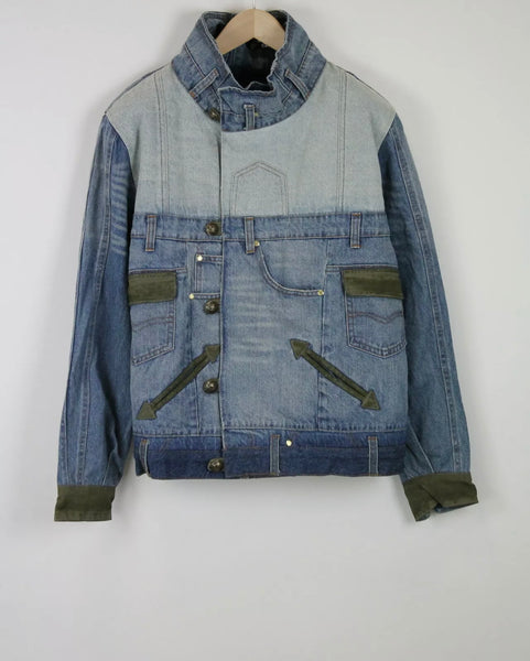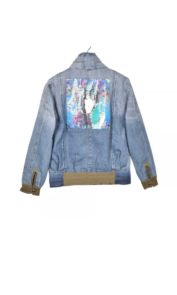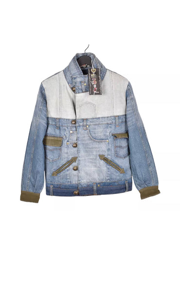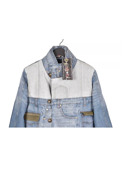 DESIGUAL Women Jacket Embellished Denim Faux Leather Short Padded