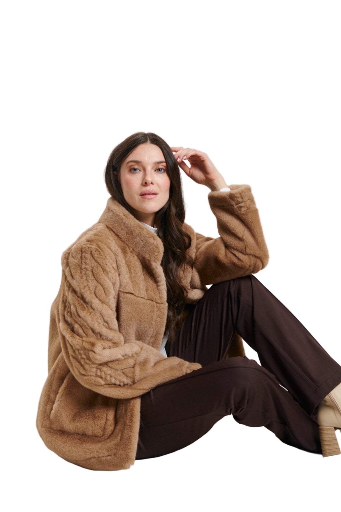 Elevate your outerwear with this effortlessly versatile coat, featuring a fully reversible design. One side offers plush faux shearling for a cozy, laid-back feel, while the other showcases a sophisticated cable-patterned faux fur for a more refined look. Designed with both warmth and elegance in mind, this piece delivers two distinct styles in one timeless silhouette.
