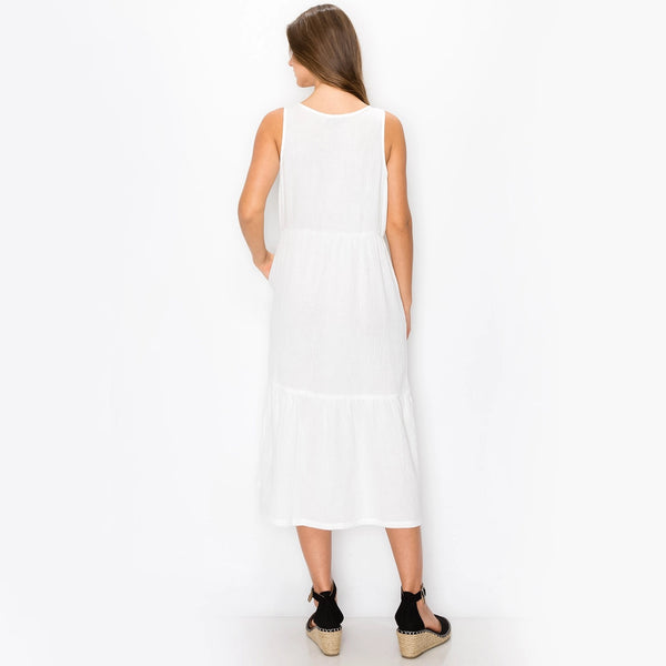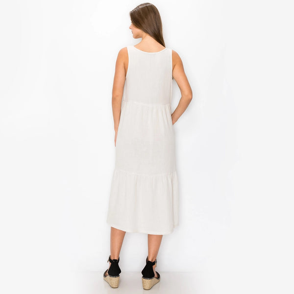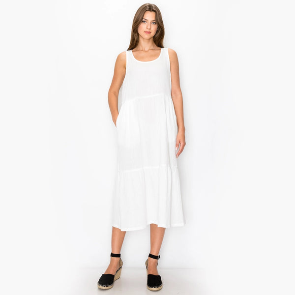 FLUFFY GAUZE RUFFLE TIER POCKET DRESS - Fluffy Gauze Fabrication - Color Way: Ivory, Coco, Black, Coral, Papaya, Natural - Pocket Detail - Ruffle Tier Dress - Soft - Comfy - Travel Wear - Daily Wear - Lounge Wear - Content of Fabric: 100% Cotton - Hand Wash Recommended - Imported