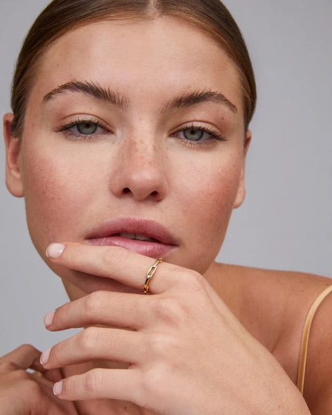 Make a statement with this classic in the making. Featuring a trending square link chain, the Andi Band Ring in Gold is an elevated basic to stack every day.
