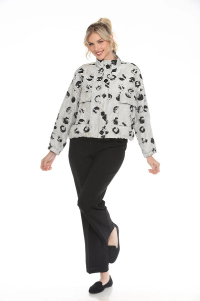 Polka-Dot Short Pocket Jacket - Silver/Black - 3919