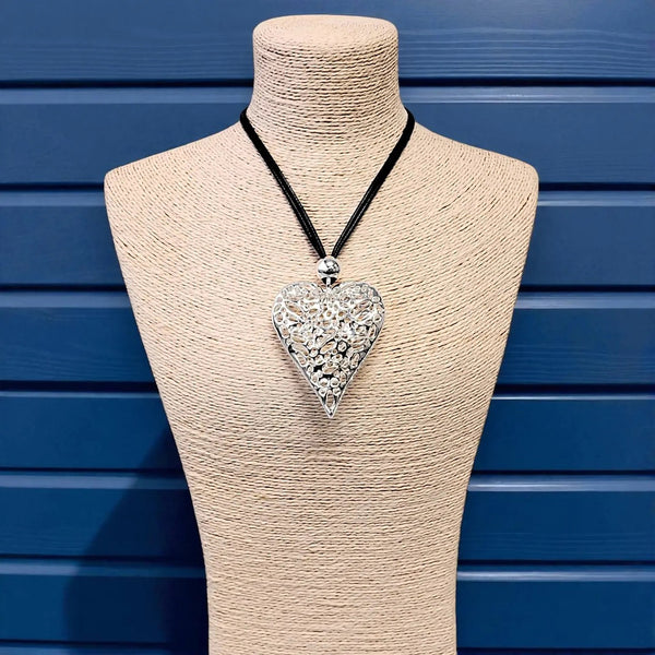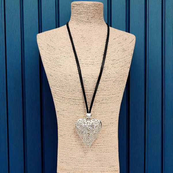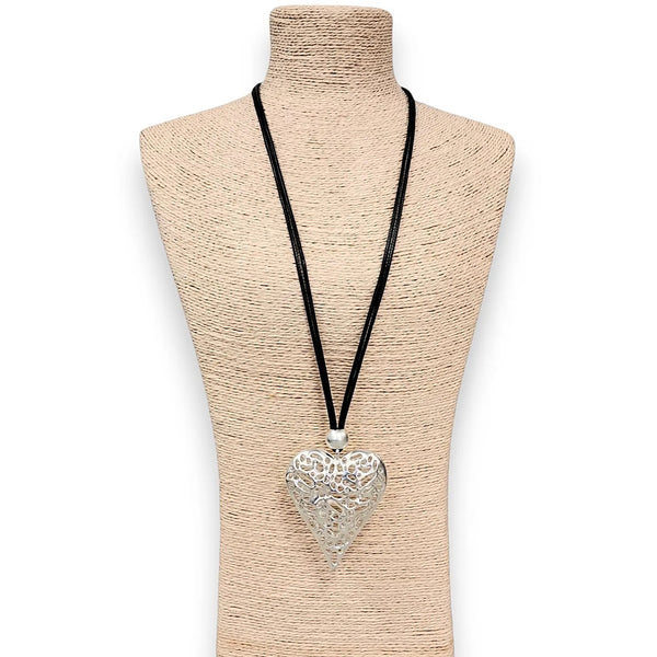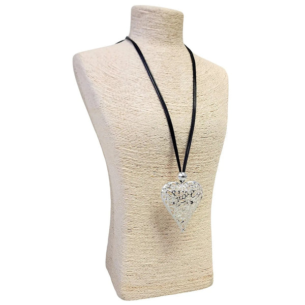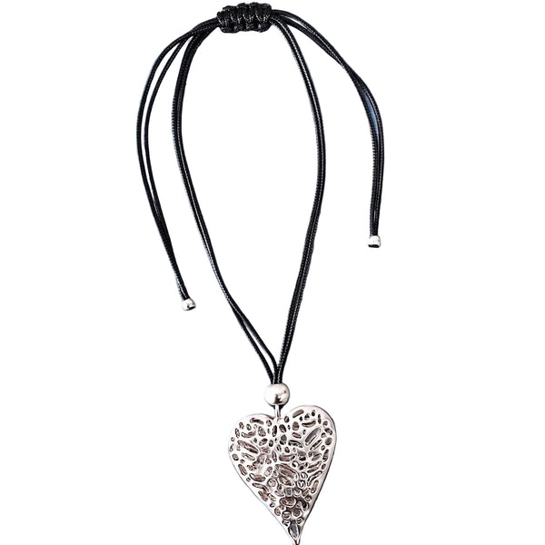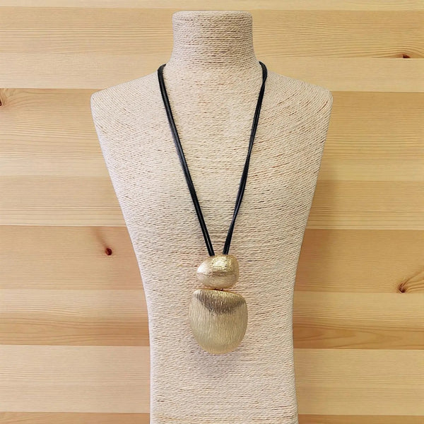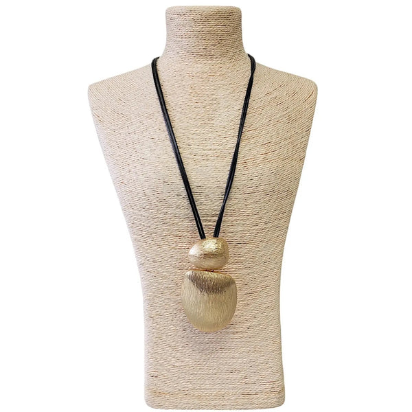 🔹Can Be Worn Short or Long 🔹Fully Adjustable: 18" to 36" 🔹Chunky Sculpted Pendant in Vintage Gold 🔹Faux Leather Cord in Jet Black 🔹Full Adjustable Sliding Knot Clasp