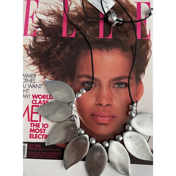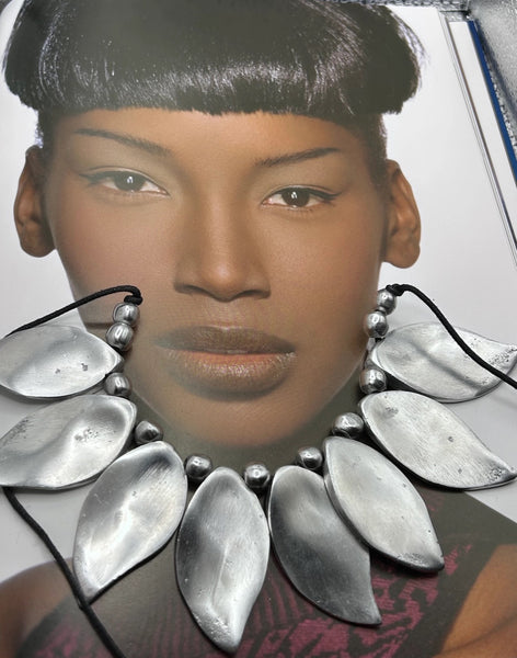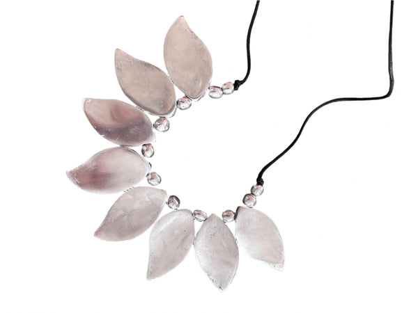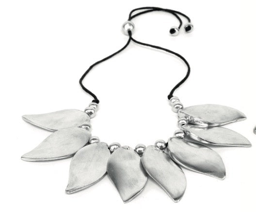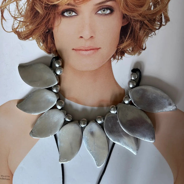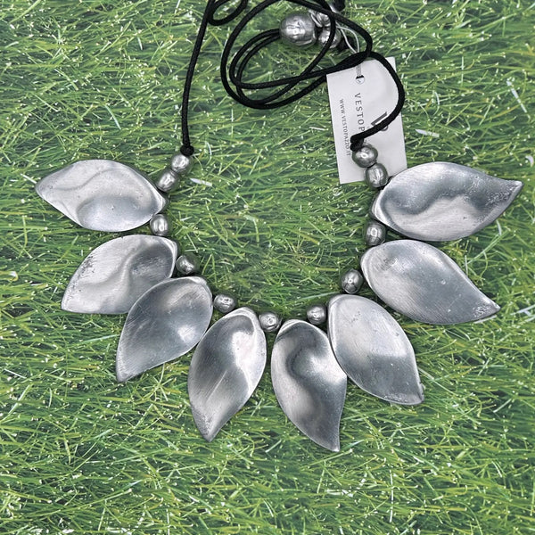 Craftsmanship is the main element of our collections. Each bijoux preserves creativity, experimentation and technique. We care for what surrounds us we are committed to the reuse of aluminum, and in the attention for the chosen materials, respecting each other and nature. Each piece is individually created by hand, this makes it unique in its being, for this reason jewels can have small differences between one piece to another piece, this shouldn’t be considered defect but rather part of the glamor. All jewels come individually wrapped in plastic bags. • Handmade • Imported • Italian design • Recycled aluminum • Nickel Free • Stainless • Hypoallergenic • Adjustable waxed cotton cord SIZE • Length 16.92" • Width 7.08" • Height 2.16"