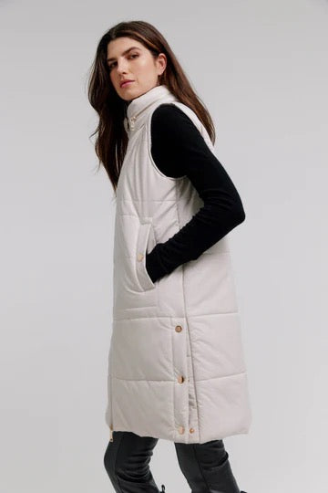Look trendy and sophisticated with this vegan leather quilted vest featuring gold trim and side snaps. Crafted with a zipper closure and two side pockets, this vest is a must-have to complete your wardrobe. It has a 36" length for superior coverage and comfort.