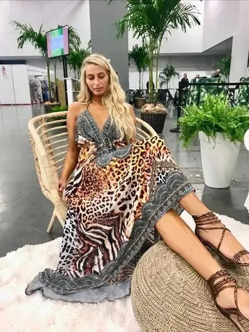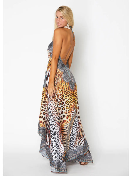 Halter neckline Crystal embellished neckline Open back Tassel-finished ties Hook-and-eye closure at neckline and back One size fits all Sexy silhouette, fits everyone. best seller!
