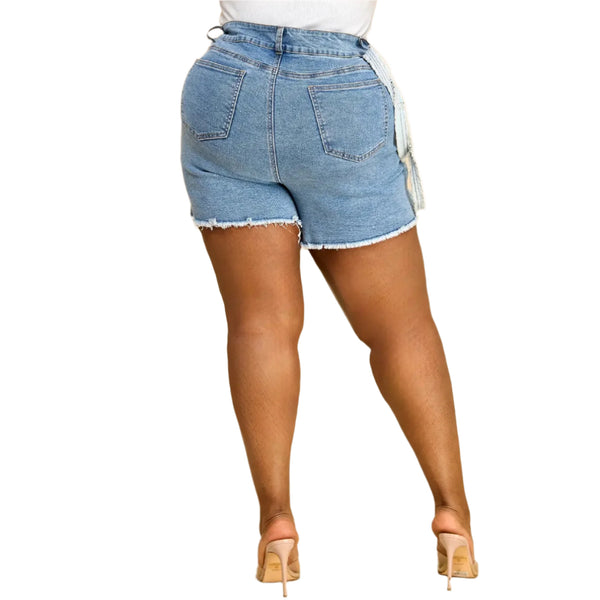 Patch Frayed High Waisted Denim Shorts * Patch * Frayed * High Waisted * Denim Shorts * Plus Size