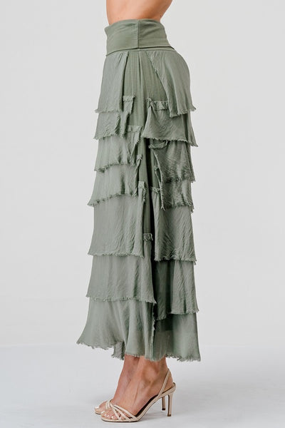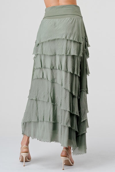 Long layered skirt, in a silk and viscose mix.