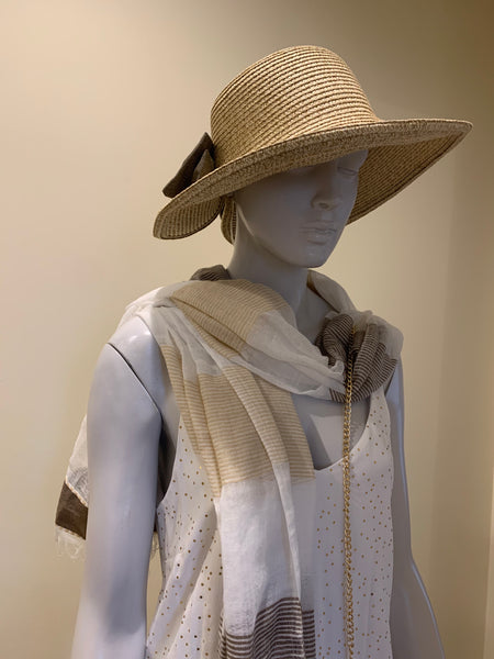 Summer hat made out of 100% paper. Straw Hat with a Bow Decor, Cloche Hat.