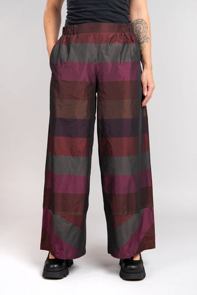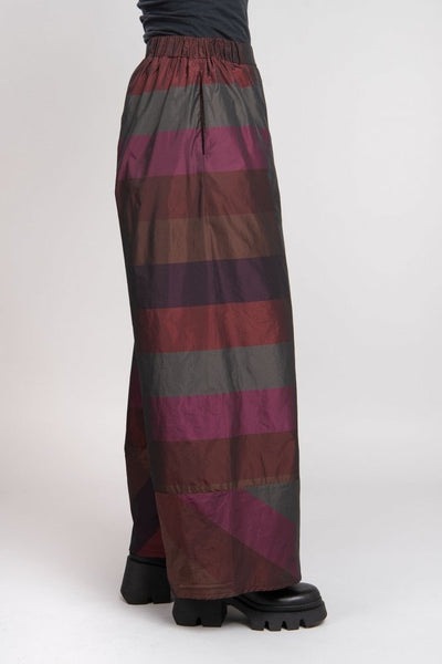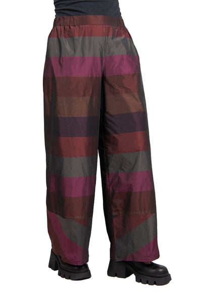 Fabulous striped trousers in a taffeta style fabric. Flat front waistband with elastication, wide leg. If you're looking for a special occasion outfit, the matching Luukaa Rosa Jacket creates a stunning two-piece outfit. Alternatively chic with a chunky knit.