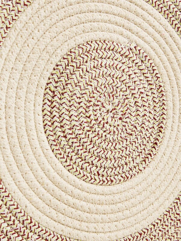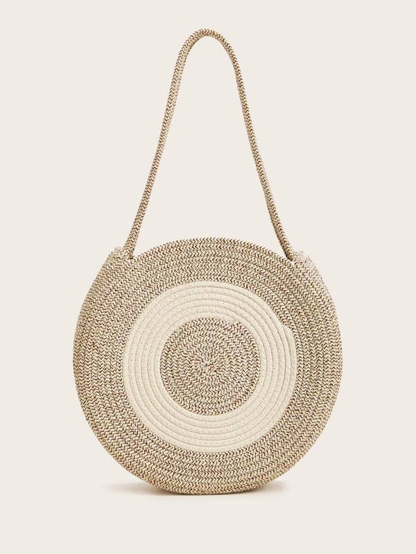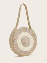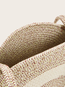 Colorblock Braided Tote Bag. Top handle, exterior pocket for easy access.
