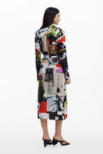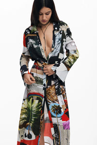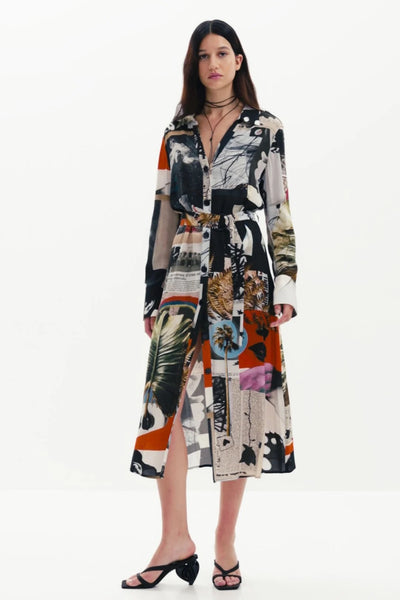 Long crepe shirt dress with a shirt collar and belt designed by M. Christian Lacroix.