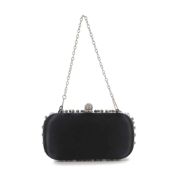 Mesmerizing stones in a retro pattern shine across an evening bag that is finished with a chain handle. This is what you wear when you want to be noticed!