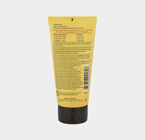 Our SPF 30 Vitamin C Moisturizing Sunscreen applies smooth like a lotion and has the signature Orange Blossom Honey scent. Wear it in the sun for UVA & UVB Certified Organic Aloe Vera & Sunflower Oil help to restore, heal & promote healthy skin Directions: Apply liberally to exposed skin 15 minutes prior to sun exposure. Re-apply every 2 hours or after swimming, sweating or towel drying. Use a water-resistant sunscreen for protection when swimming or sweating. We are not permitted to ship items containing SPF to Canada. This item will be removed from orders placed with a Canadian shipping address.