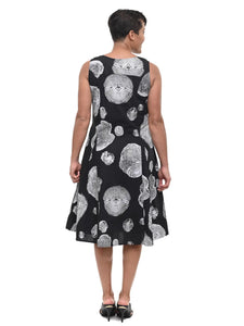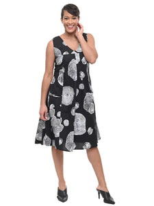 V-neck dress with pleating details on bodice and pockets * 100% Cotton * Sleeveless * Unlined * Below knee length * Machine wash cold, hang to dry.